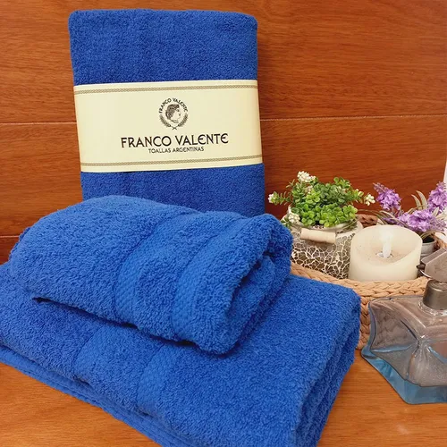 Juego de toalla y toallón Franco Valente 100% algodón de 500gr por metro cuadrado. Calidad pesada, premium ideal para el hogar como también hotelería. Colores intensos y vibrantes, que no destiñen ni se encogen con los lavados.